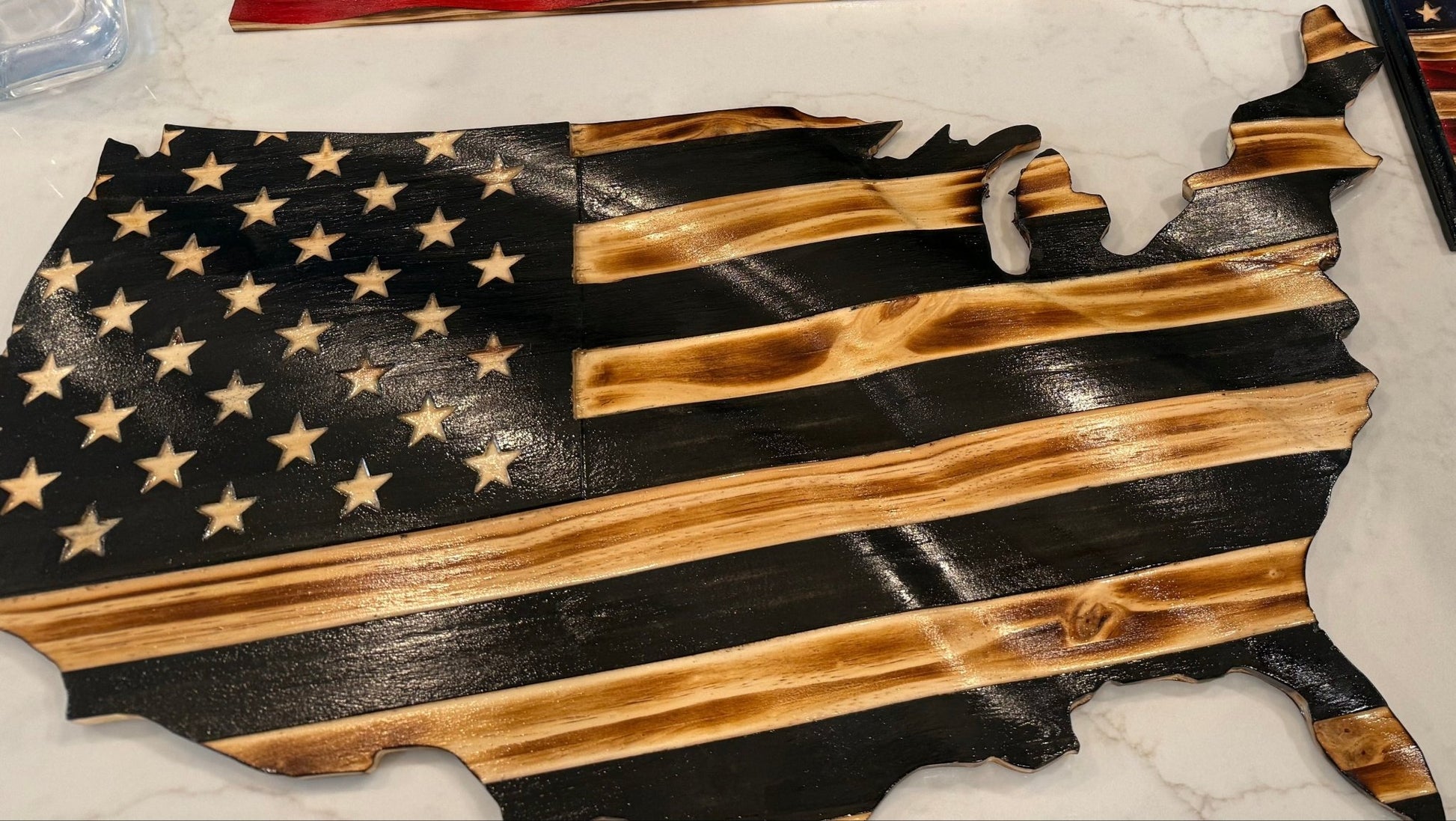 Wooden American Flag Art - 50 Star - USA Map - Cutout - Black